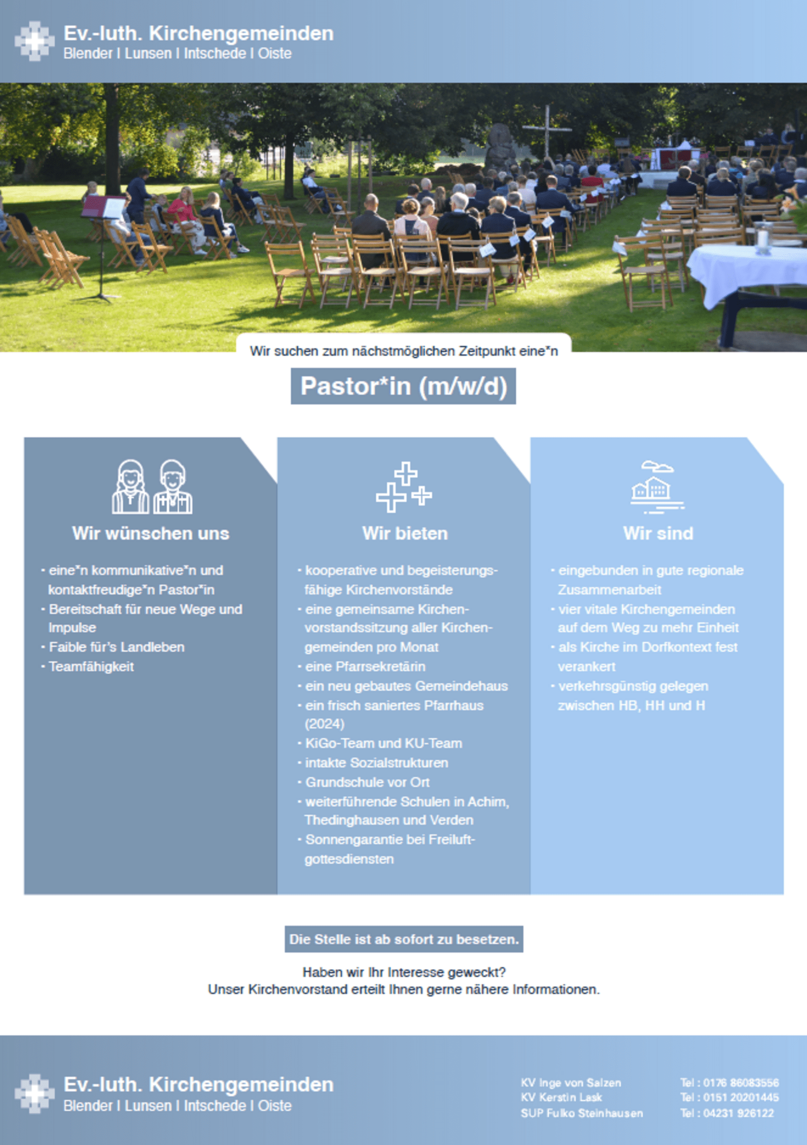 Kirchengemeinden suchen einen neuen Pastor