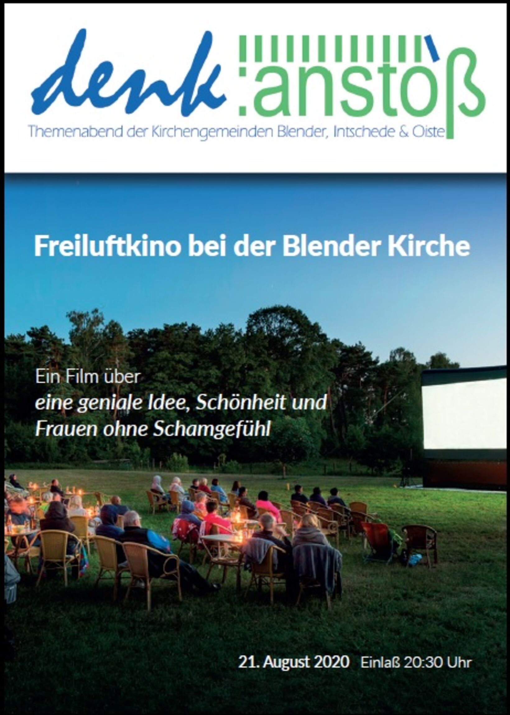 Blender. Am Freitag, 21. August, findet in Blender an der Kirche ein Freiluftkinoabend statt. Organisiert wird er von der Kirchengruppe „Lebendige Gemeinde“. „Nachdem nun monatelang keine Veranstaltungen in unseren Gemeinden stattgefunden haben, wollten wir unbedingt einmal wieder etwas anbieten“, erzählt Kerstin Lask von der Lebendigen Gemeinde. Die Idee eines Freiluftkinos war schnell gefasst, die Vorbereitungen erforderten dann etwas mehr Arbeit als sonst. „Wir haben alle Hygienemaßnahmen geplant und mussten auch in Sachen Technik einiges neu gestalten“, so Lask weiter. Nun kann es am Freitag losgehen. Gezeigt wird eine britisch-amerikanische Komödie. Einlass ist ab 20:30 Uhr, der Film soll um 21:00 Uhr beginnen. Die Besucher sind gebeten, Zettel mit Namen und Kontaktmöglichkeiten mitzubringen, um den Einlass zügig zu gestalten. Außerdem bitten die Organisatorinnen darum, eigene Sitzgelegenheiten wie Garten- oder Campingstühle mitzubringen. „Und Mückenspray wäre vielleicht auch eine gute Idee“, ergänzt Pastor Sievers.