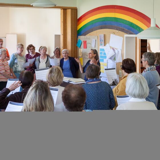 Im Anschluss daran wurden innerhalb kürzester Zeit das zweistimmige Lied „Wohlauf in Gottes schöne Welt“ und das vierstimmige Stück „O Täler weit, o Höhen“ einstudiert: zwar nicht perfekt; aber durchaus klangvoll – und diesmal ohne Quietschen und Brummen, dafür mit einem klaren hohen Sopran und einem kraftvollen tiefen Bass.